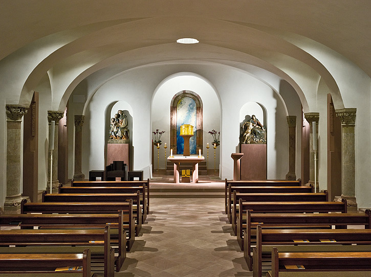 Unweit vom Schrein der Märtyrer des 7. Jahrhunderts befindet sich das Urnengrab des jüngsten Märtyrers aus Franken, des seligen Pfarrers Georg Häfner, der am 20. August 1942 im KZ Dachau den Hungertod starb. Eine lebensgroße Statue aus Corten-Stahl, gefertigt vom Bildhauer Karlheinz Oswald, stellt uns ihn als standfesten Priester mit hoffnungsvollem Blick vor.